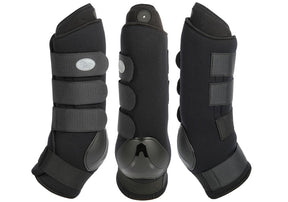 Neoprene beenbeschermers met 4 klittenbandsluitingen. Voorzien van met klittenband uitneembare, snel drogende voering. Gemakkelijk wasbaar. Ideaal te gebruiken als stalbandages (stalbenen), transportbescherming etc. Een praktisch en efficiënt alternatief voor traditionele bandages.