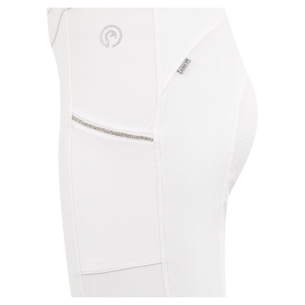 Deze ANKY wedstrijdlegging heeft een ideale pasvorm die goed van pas komt tijdens wedstrijden en trainingen. De elastische tailleband is afgewerkt met twee zilveren sierstrepen en de ruime zijzakken zijn gedecoreerd met zilveren gevlochten tape.