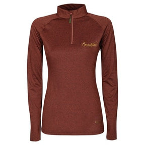 Melange shirt met opstaande kraag met korte ritssluiting en het Equestrian Society logo op de borst.