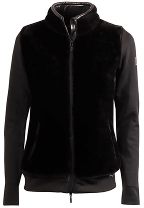Vest met een body van comfortabel kunstbont en stretchstof mouwen, tweeweg ritssluiting, twee zakken met ritssluiting en glimmend materiaal aan de binnenkant van de kraag.