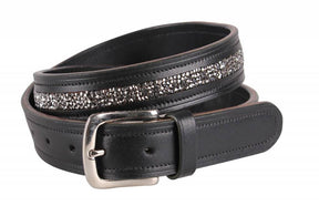 - Zwarte leren ceintuur ingelegd met verspreidde strass steentjes voorzien van een RVS gesp. Passend bij de andere Lupine producten.