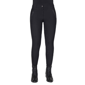 De Avélie rijbroek heeft een fijne pasvorm met een modern design. De stretchstof geeft je een heerlijk draagcomfort. De broek heeft een siliconen full grippatroon. De zigzag-bies op de zakken aan de voor- en achterzijde geven de rijbroek een stoere uitstraling. Je kunt je telefoon makkelijk kwijt in de steekzak op je rechterbovenbeen.