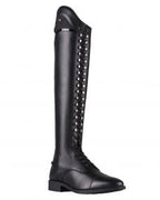 Rijlaars Hailey is een echte eyecatcher in de ring. De bovenkant van de laars is gedecoreerd met lakleer en glitter. De decoratieve vetersluiting zorgt voor een opvallende look, maar met de ritssluiting trek je hem gemakkelijk aan. De elastische veter, elastiekinzet en comfortabele binnenzool zorgen voor hoog draagcomfort.