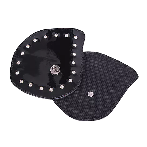 Deze top is uitgevoerd in lakleder ingezet met zilveren strass steentjes langs de rand.