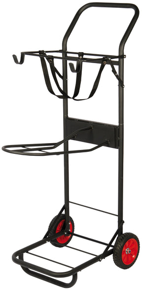 Deze stalkruier is ideaal om uw zadel, hoofdstel en poetsspullen tot vlakbij het paard te rijden.