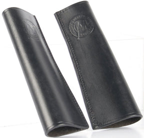 Lederen hoes ter bescherming van de gesp van de beugelriemen indien deze onderaan bevestigd zijn. Per paar.