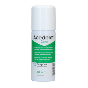 Acederm Care Huidspray voor honden, katten, paarden, runderen en schapen. Verzacht, voedt en beschermt de huid. Gebruik Uitwendig gebruik. De huid eerst grondig reinigen en droog maken. Goed schudden voor gebruik. Tweemaal per dag op de huid sprayen. Ingredi‘nten Levertraan, castorylmaleaat, butaan, propaan, Perubalsem, isopropylalcohol, pentaan, allanto•ne, diatomee‘naarde.