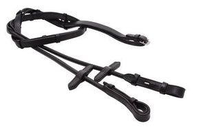 Rondgenaaide lederen teugel voorzien van blinde sluitingen en RVS fournituren.