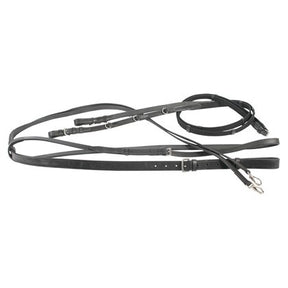 Thiedeman teugel, compleet met martingaal. Voorkomt dat het paard het hoofd te ver omhoog of naar voren brengt.