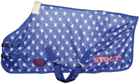 Vliegendeken mesh met sterrenprint. Soepel en sterke stof. Dubbele voorsluitin, laag aangezette kruissingels met metalen koppelsluitingen, staartlus