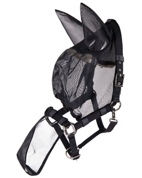 Dit halster beschikt over een vliegenmasker met oren welke met klittenband is bevestigd. Daarnaast beschikt het over een afneembare neusflap. Het masker en de neusflap kunnen hierdoor desgewenst worden afgenomen. De elastische "neusriem" van het masker zorgt ervoor dat het masker goed aansluit bij de neus. Het masker en halster zijn voorzien van fleece voering. Het halster is verstelbaar bij het kopstuk en de neusriem.