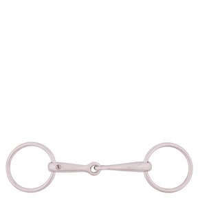 Enkel gebroken, pony, massief roestvrij staal, ringen 55 mm. Het mondstuk heeft een dikte van 14 mm.