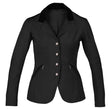 Dames wedstrijdjasje gemaakt van waterafstotende softshell stof. Het jasje is vormgegeven met een fluwelen kraag en kristallen bies langs de kraag en zakken.