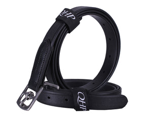 Zeer sterke beugelriemen van biothane. Dit materiaal is soepel, sterk en duurzaam. De beugelriemen hebben een leerlook en zijn voorzien van RVS-gespen.