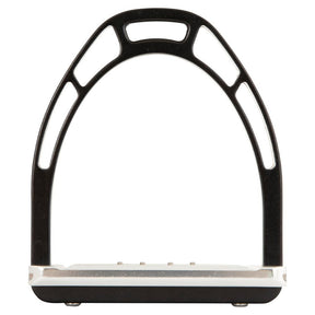 De brede roestvrijstalen antislip beugelzool met grof profiel geeft de ruiter optimale grip en staat een klein beetje schuin zodat de zool beter aansluit aan de voet van de ruiter. Dit zorgt voor een optimale beenligging en stabiliteit en voorkomt overbelasting op de knieën, heupen en enkels. Ook de afgeschuinde stijgbeugelriemophanging draagt bij aan de stabiliteit en de beenligging van de ruiter. Zowel de beugel als de zool is slijtvast. Beide behouden hun kleur en roesten niet dankzij een anodiseerlaag. Per paar.