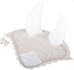 Fliegennetz mit Ohren, gehäkelte Baumwolle. Mit dekorativer Kordel und Kristallen.