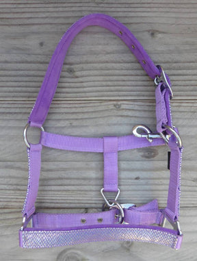 Luxuriöses Halfter mit glänzendem Stirnband, Backenstücken und Nasenriemen.
