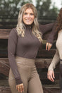 Shirt met lange mouw, opstaande kraag met korte ritssluiting en het Equestrian Society logo op de kraag en op de linkermouw.