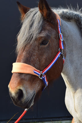 Doppelt verstellbares Kopfband und verstellbares Nasenband. Gefüttert mit weichem Fleece und robuster Polsterung