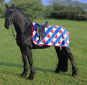 Luxuriöse Fleece-Reitdecke mit Sattelaussparung und Friesenflaggen-Aufdruck.