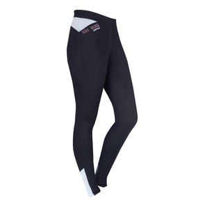 Das Beste aus Reithose und Leggings vereint sich in einer bequemen Reithose aus 4-Wege-Stretch-Leggings-Stoff aus hochwertigem Polyamid mit wasserabweisenden, atmungsaktiven und feuchtigkeitsregulierenden Eigenschaften. Die Fronttaschen sind tief genug für ein Mobiltelefon und der bedruckte Silikonsitz sorgt für die nötige Stabilität im Sattel. Produktspezifikationen: - Sportlich designte Leggings im klassischen Reithosen-Look - Hochwertiges 4-Wege-Stretchmaterial; wasser- und staubabweisend, feuchtigkeitsabsorbierend und atmungsaktiv – Dezente Mesh-Akzente – Falscher Reißverschluss, zwei tiefe Fronttaschen (tief genug für ein Mobiltelefon) – Holografischer Foliendruck an der Seite – Bedruckter matter Silikon-Vollbesatz Material: 93 % Polyamid, 7 % Elasthan – gewebt