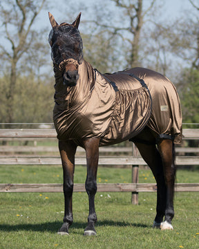 Ekzemhaube mit großer, feinmaschiger Maske und Nähten, die für einen guten Sitz sorgen. Die Kapuze kann auf zwei Arten an der passenden Ekzemdecke befestigt werden. Die Kapuze lässt sich durch drei Schlaufen mit Klettverschluss am Hals der Ekzemdecke befestigen. Der Hals der Ekzemhaube kann mit einer Clipschnalle an der Brust befestigt werden.