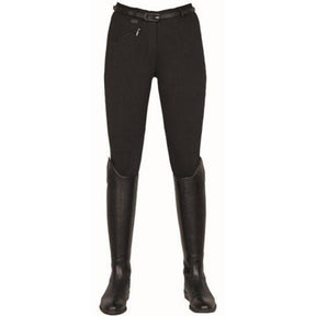 Diese Reithose ist atmungsaktiv und hautfreundlich. Es verfügt über einen Softline-Besatz aus Wildlederimitat und einen Bund mit Gürtelschlaufen. Diese Hosentasche hat vorne einen Reißverschluss. Der Beinabschluss ist mit einem Klettverschluss versehen.