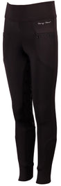 Paardrijlegging met twee zakken waarvan een met ritssluiting, kristallen details, zitvlak voorzien van een siliconen print voor extra grip in het zadel en met een elastische inzet rond de enkels.