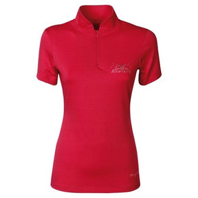 Shirt mit Stehkragen abgerundet durch einen kurzen Reißverschluss vorn, einem sportlichen Band mit Logo an den Seiten und einem Logo auf der Brust.