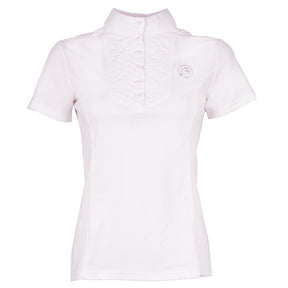 Das ANKY® Pleated s/s Shirt hat einen klassischen Look durch den Baumwolleinsatz mit Knopfverschluss und Perlen. Das Shirt besteht aus Piqué-Stoff, der leicht elastisch, feuchtigkeitsregulierend und UV-beständig ist. Das Hemd verfügt an der Rückseite des Kragens über eine Schlaufe zur Befestigung des Plastrons.