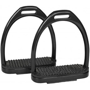 Leichte Aluminium-Steigbügel inklusive schwarzer Fußplatte, in schönen Glanzfarben.