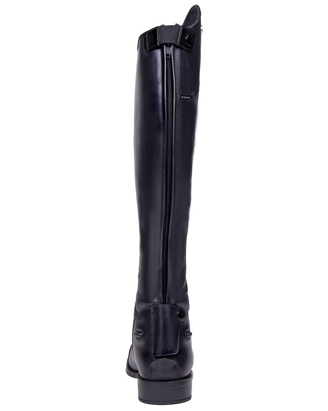 De rijlaars Lyssa is een elegante rijlaars. De laars is voorzien van een rits met elastische inzet aan de achterkant en elastische veters aan de voorkant. De bovenkant van de rijlaars is gedecoreerd met een subtiele rij strass steentjes en luxe Q-pin.