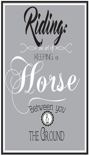 • Leuk tekstbord om op stal te hangen of gewoon voor in huis. Met de tekst: 'Riding: the art of keeping a horse between you and the ground'.