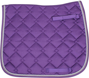 Dit zadeldek is gemaakt van absolute topkwaliteit materialen. In leuke kleuren en vele maten verkrijgbaar. Gedecoreerd met een wit en een zilveren koord.