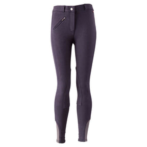 Strak model kinderrijbroek met aan de voorkant een ritszakje. De broek is voorzien van stoffen kniestukken (SKP), een rondgenaaid zitvlak en een elastische beensluiting aan het uiteinde van de broekspijp (CF). Vervaardigd van 95% katoen/ 5% elasthaan, gebreide kwaliteit.